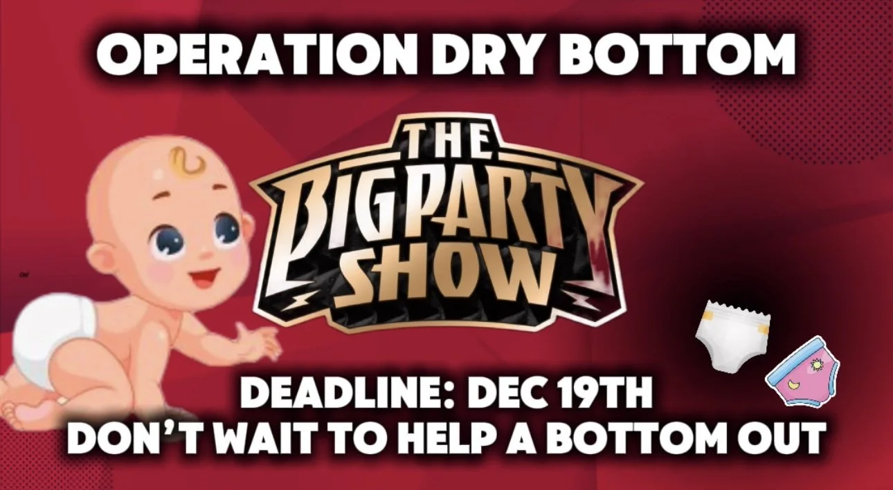 🍼 We’re only collecting monetary donations until December 19th! (We’d take actual diapers, but let’s be honest—our studio already smells questionable.)